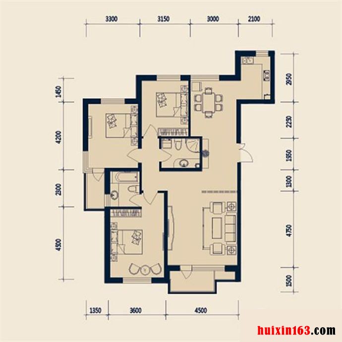 ![]() 安居三村132平米三居室欧式风格装修效果图--平面图