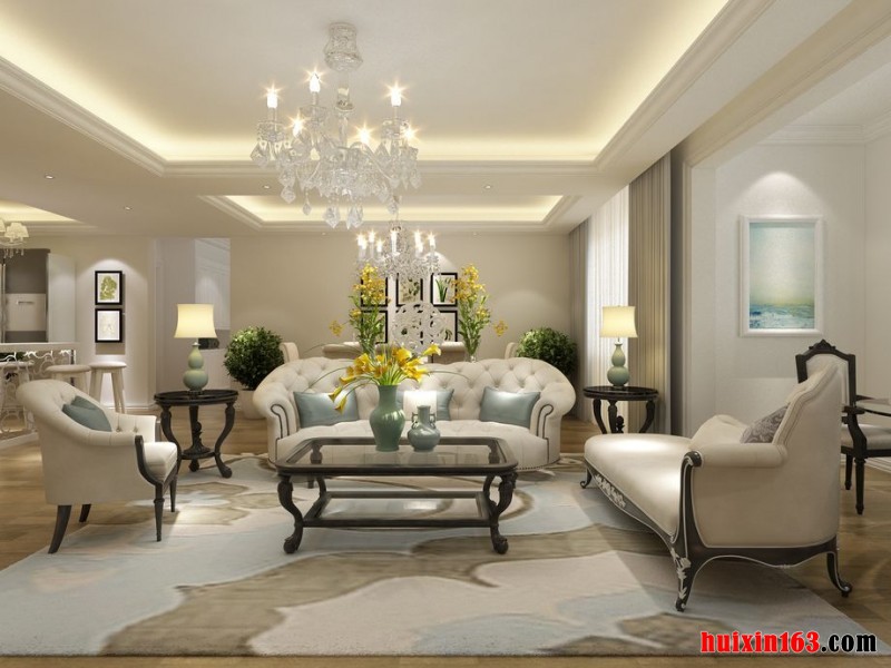 ![]() 风景佳苑160平米三居室简欧风格装修效果图--客厅